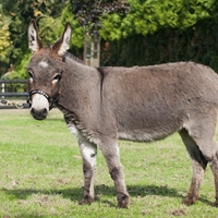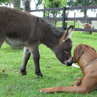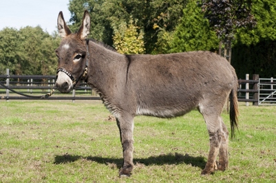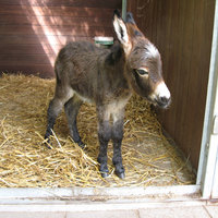 Een kopie van vader, een kleine compacte ezelin in een mooie warme bruine kleur.