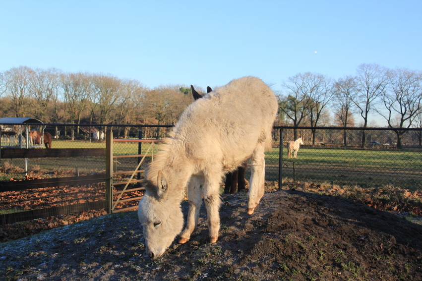 RAYA is uitgegroeid tot een bijna spierwitte merrie. Op een leeftijd van ruim twee jaar meet ze 31 Inch.
