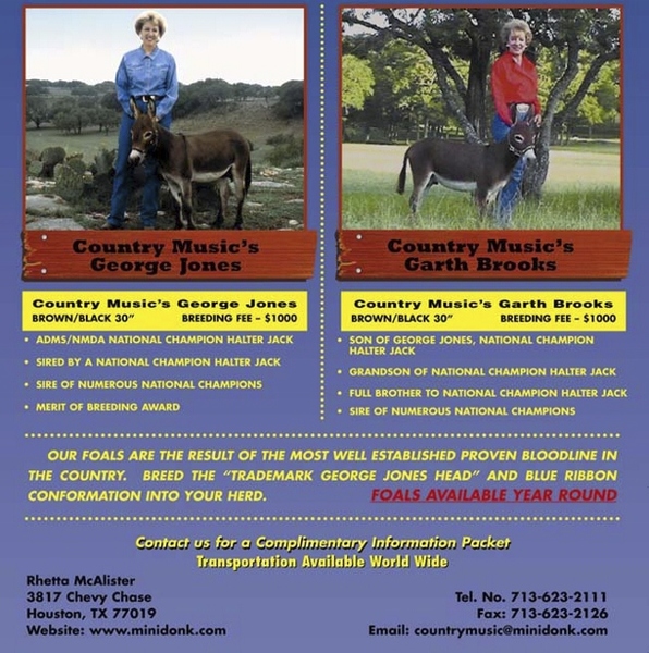 George Jones en Garth Brooks hebben samen meer dan 20 nakomelingen die Nationaal en Wereld Kampioen zijn in de USA, Canada, Europa en Nieuw Zeeland.